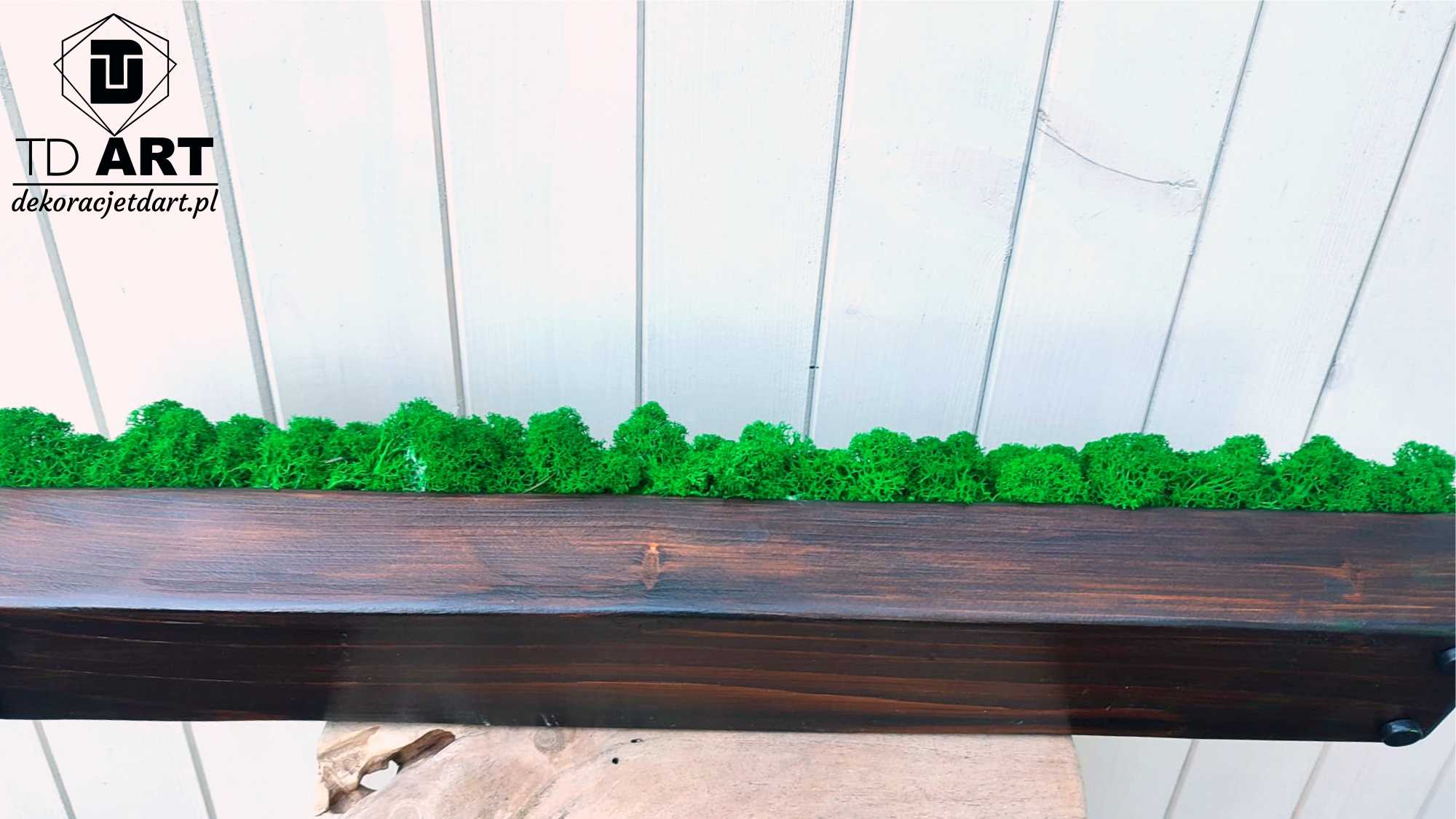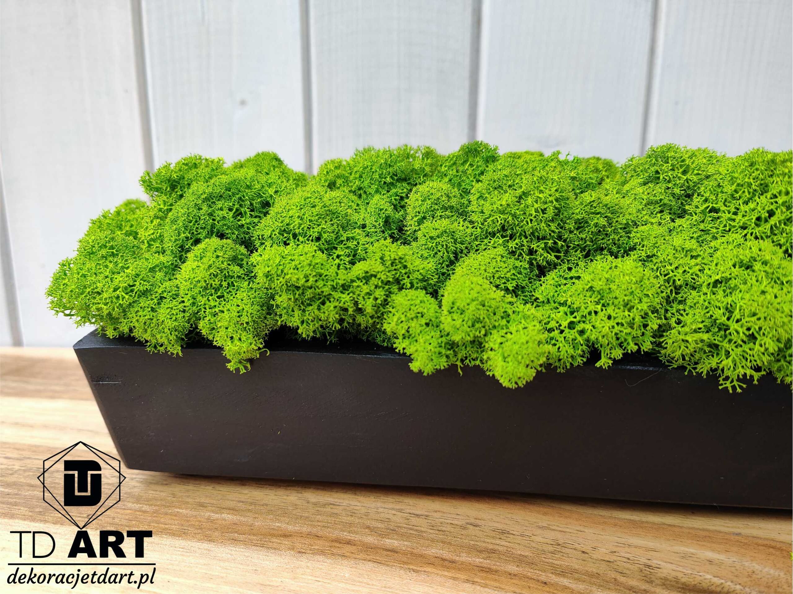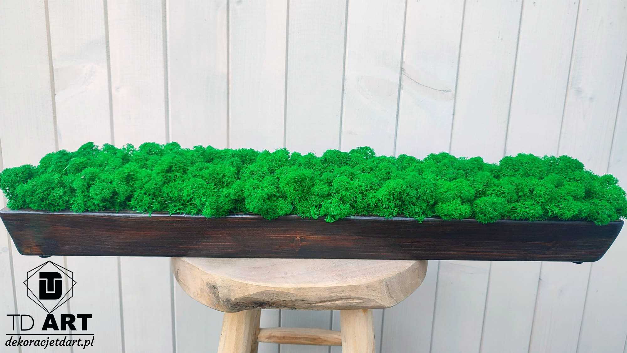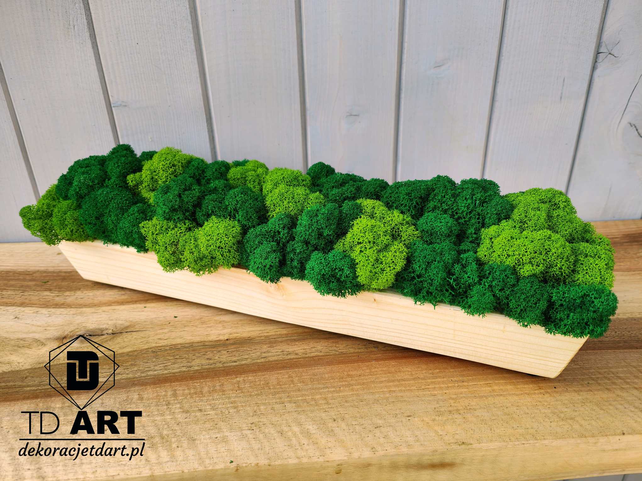 Długa drewniana doniczka z mchem chrobotkiem