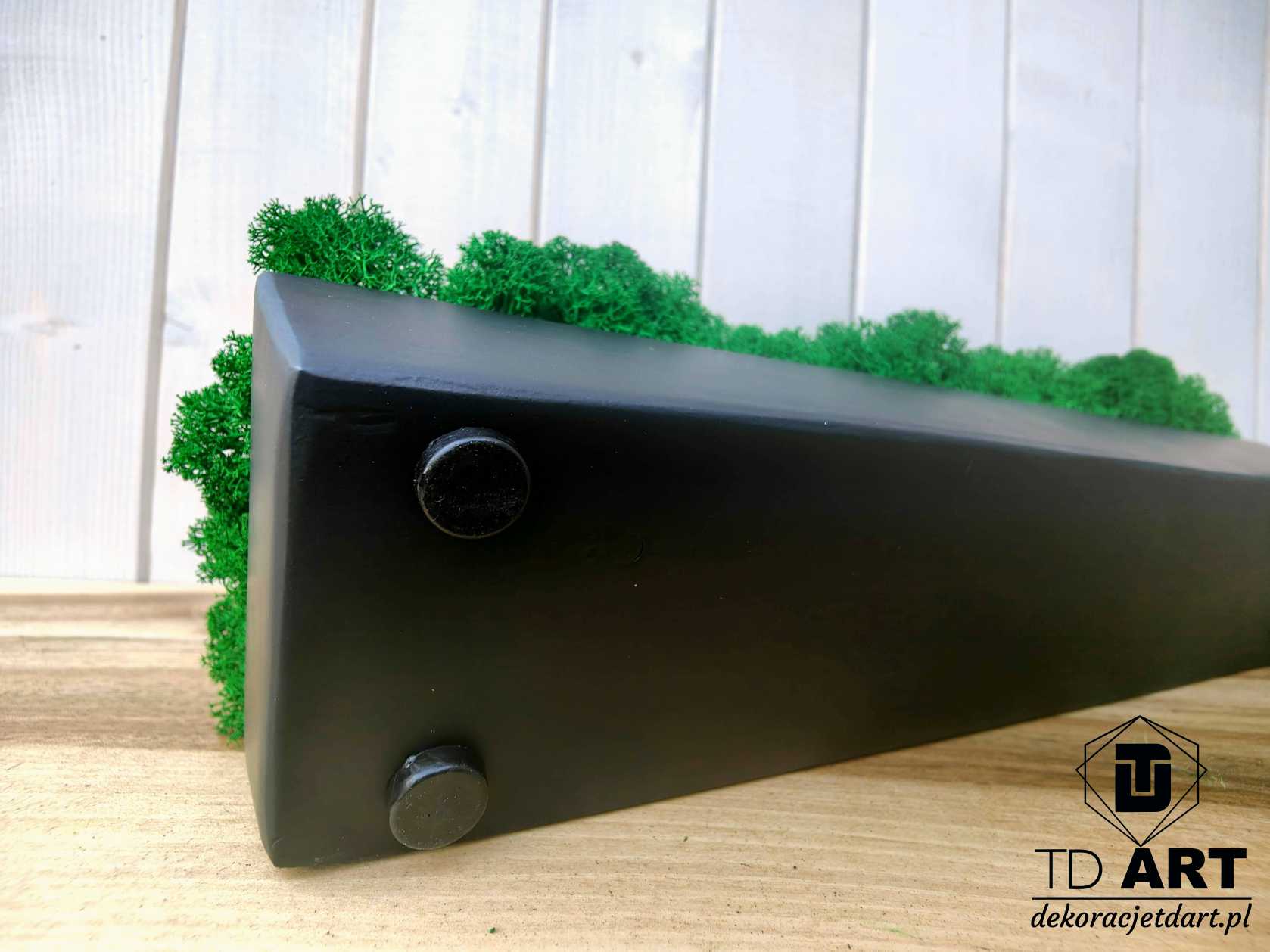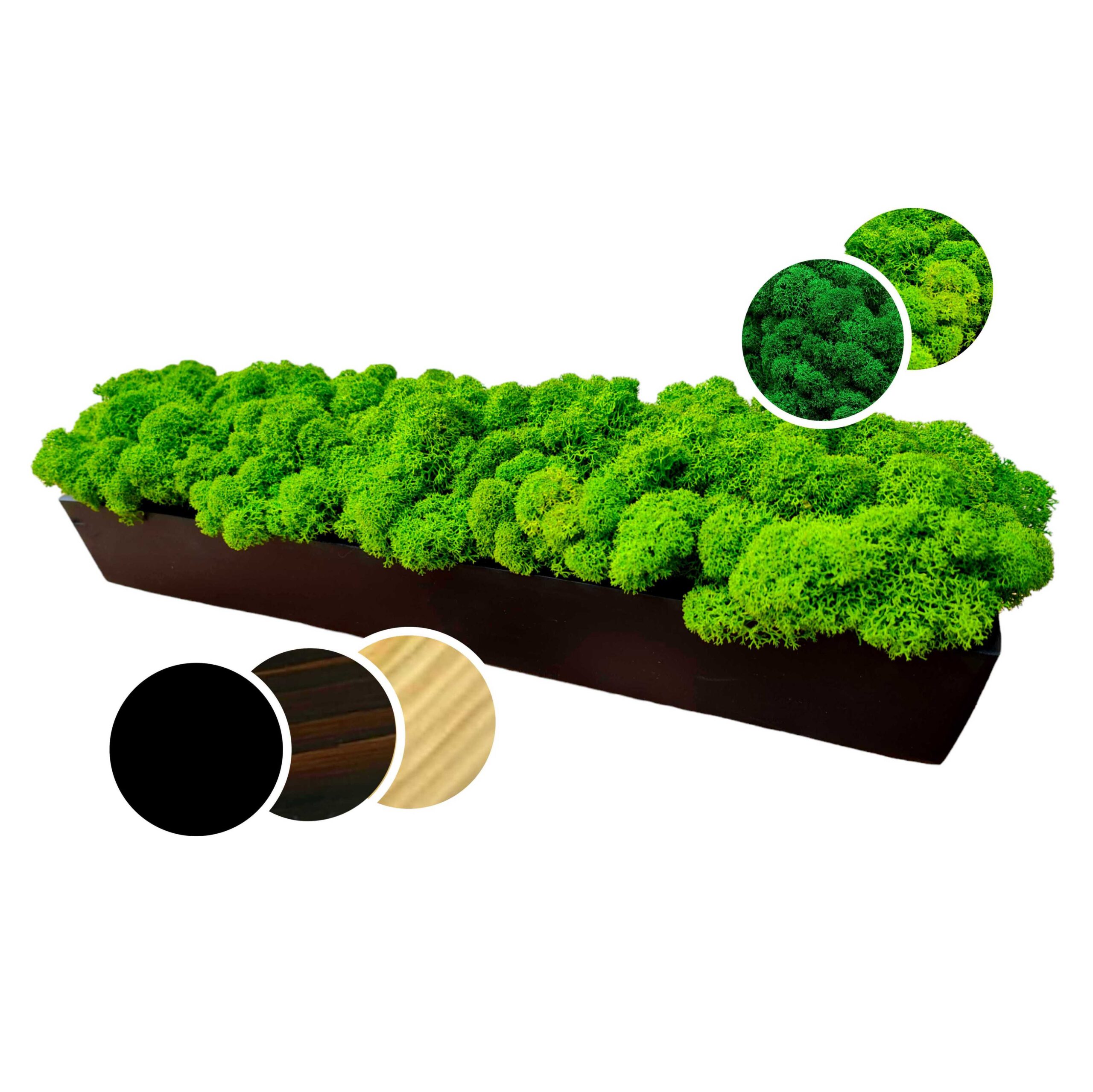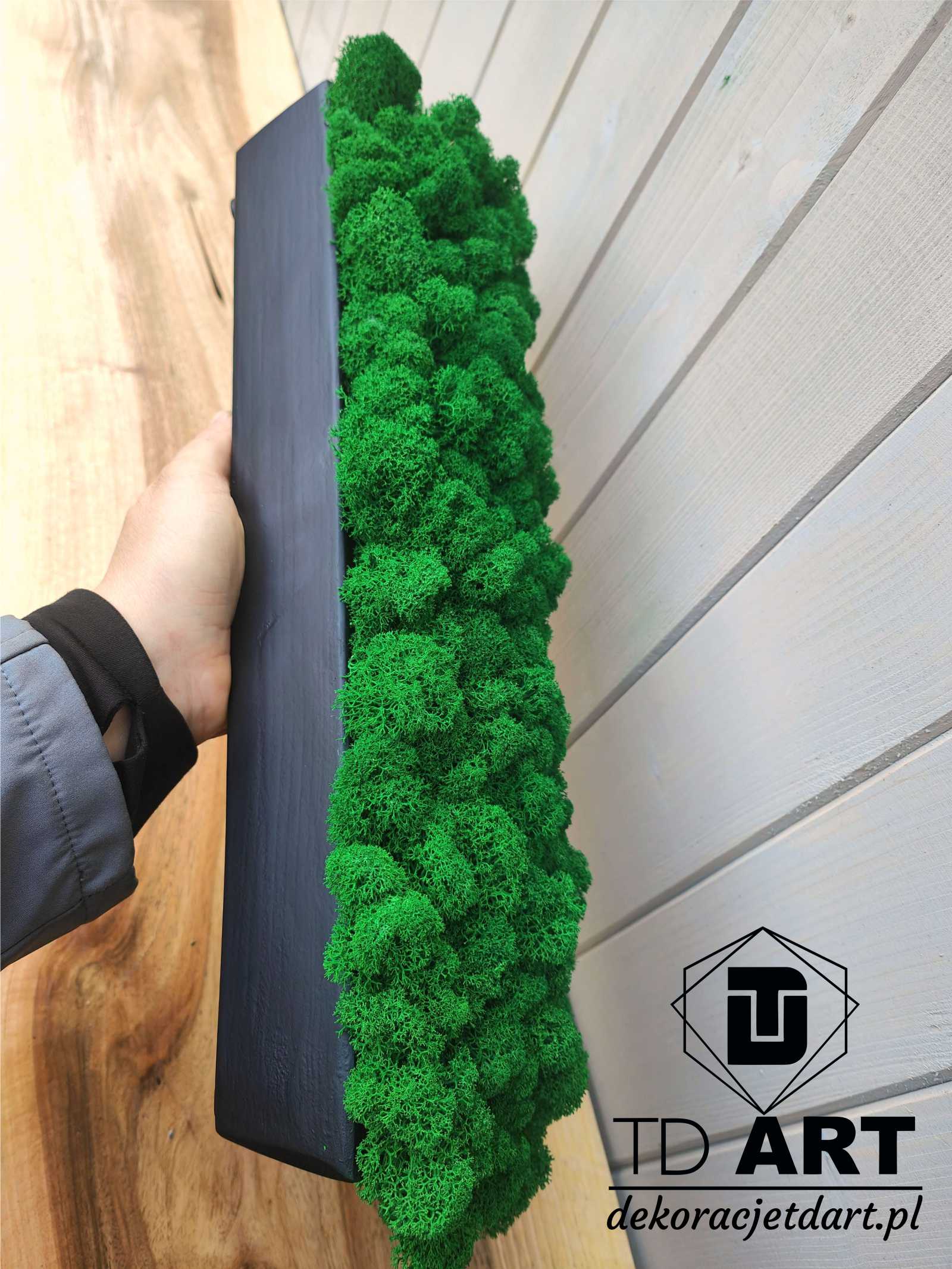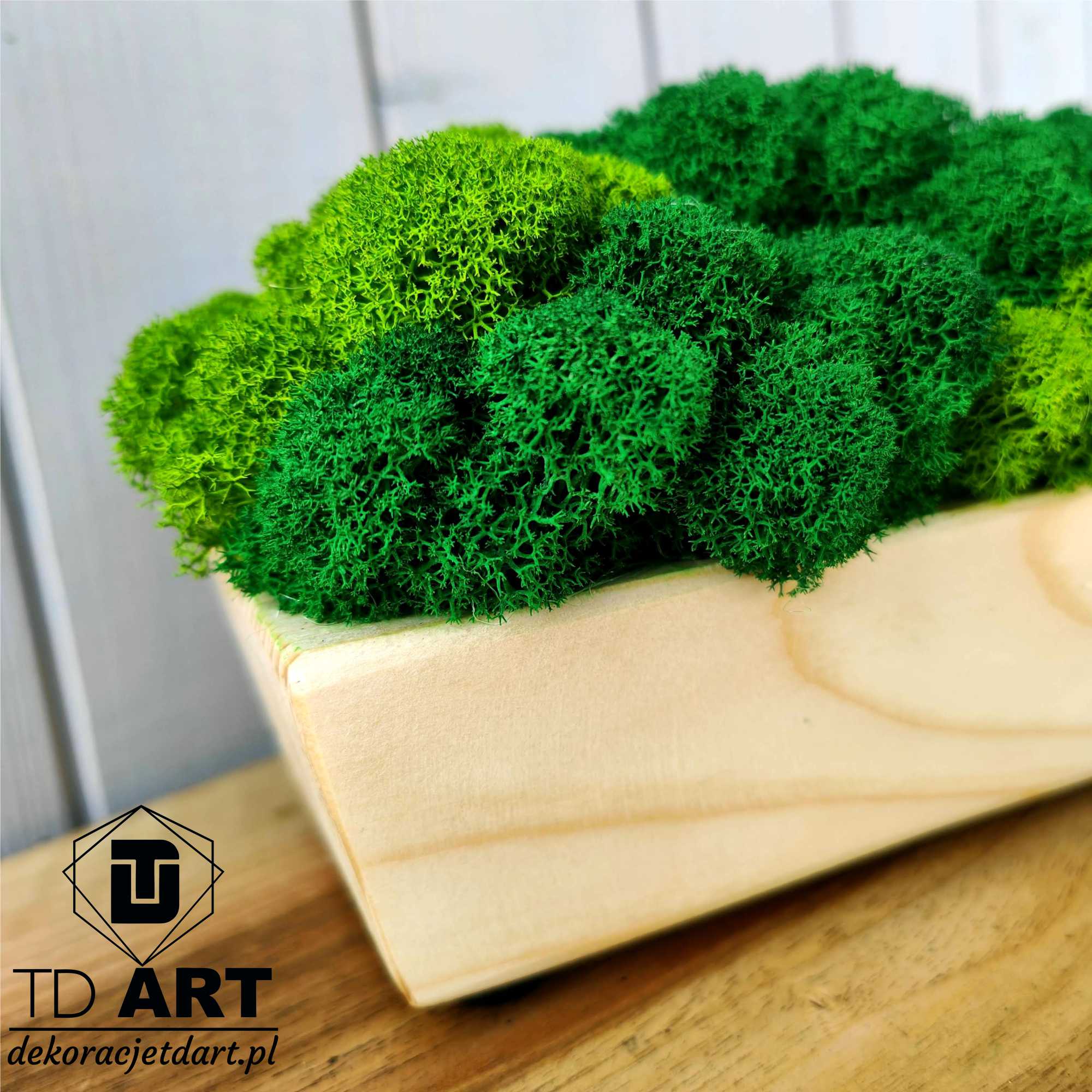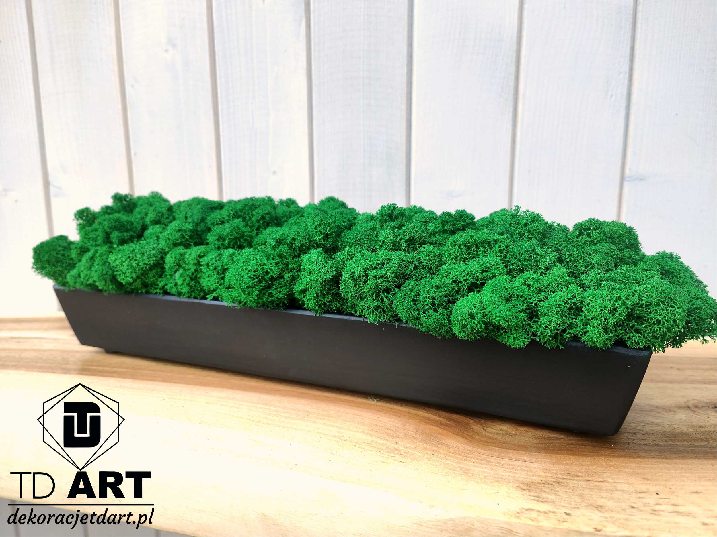 Długa drewniana doniczka z mchem chrobotkiem