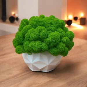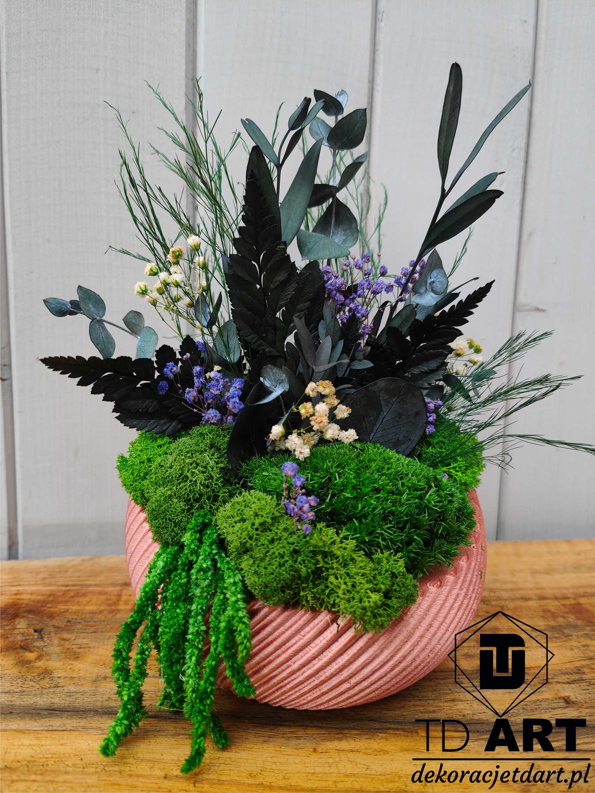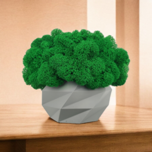 Doniczka z roślinami stabilizowanymi i mchami to esencja nowoczesnego stylu i ekologicznej świadomości.