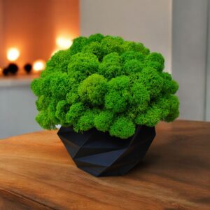 - Dzięki procesowi stabilizacji mech przestaje wymagać podstawowej obsługi, jaką trzeba zapewnić żywym roślinom: nie wymaga podlewania ani dostępu do światła słonecznego, dzięki czemu sprawdzi sięw pomieszczeniach, w których światła jest zbyt mało dla żywych roślin.