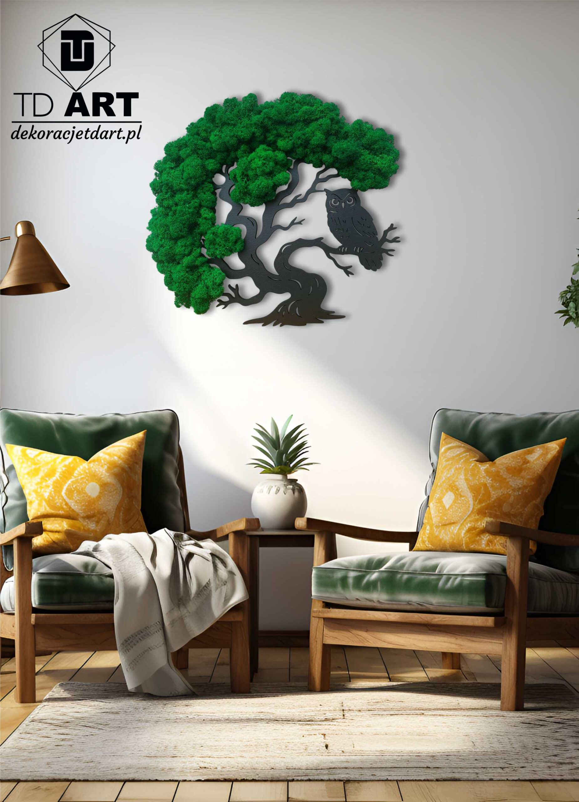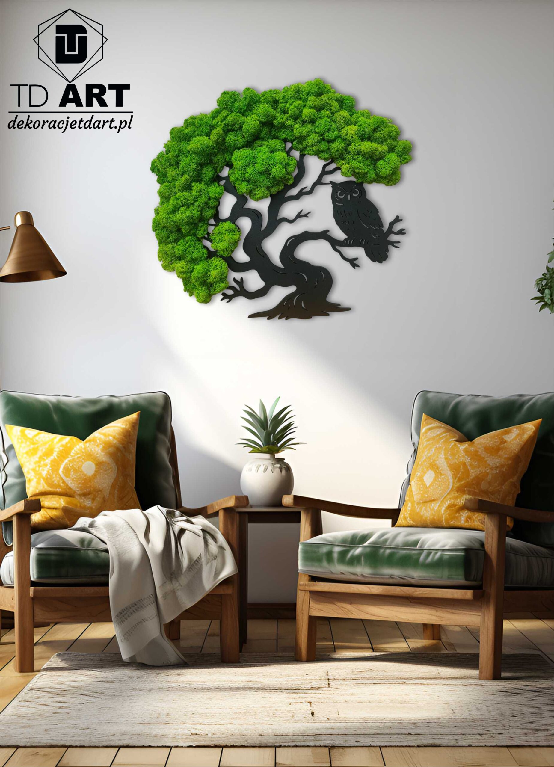 dekoracje ścienne o kształcie drzewa | sowa |drzewo | żywy obraz| mech chrobotek