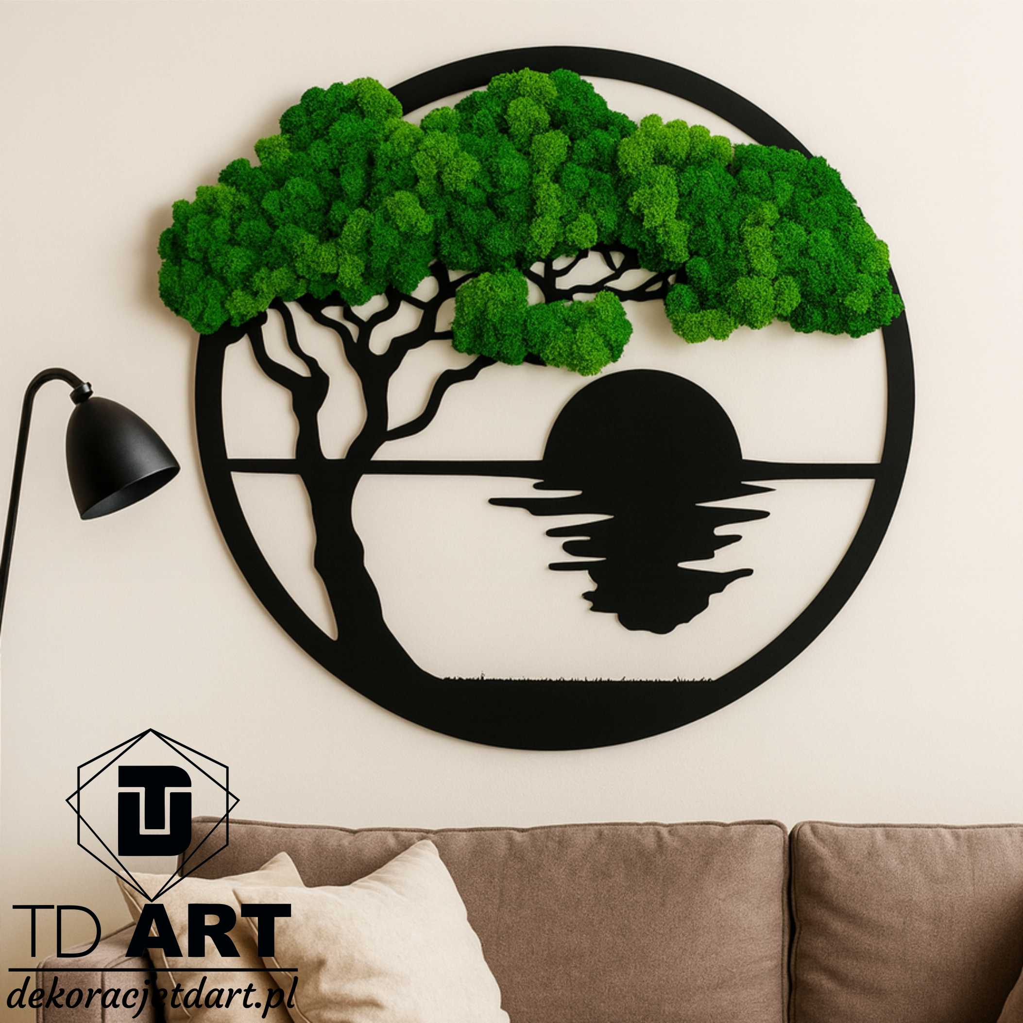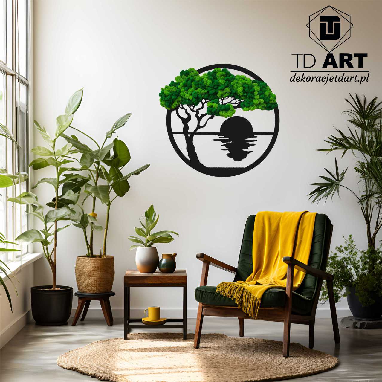 Upiększ wnętrze swojego domu poprzez niesamowitą dekoracje ścienną – Drzewo z mchem chrobotkiem reniferowym ZACHÓD SŁOŃCA