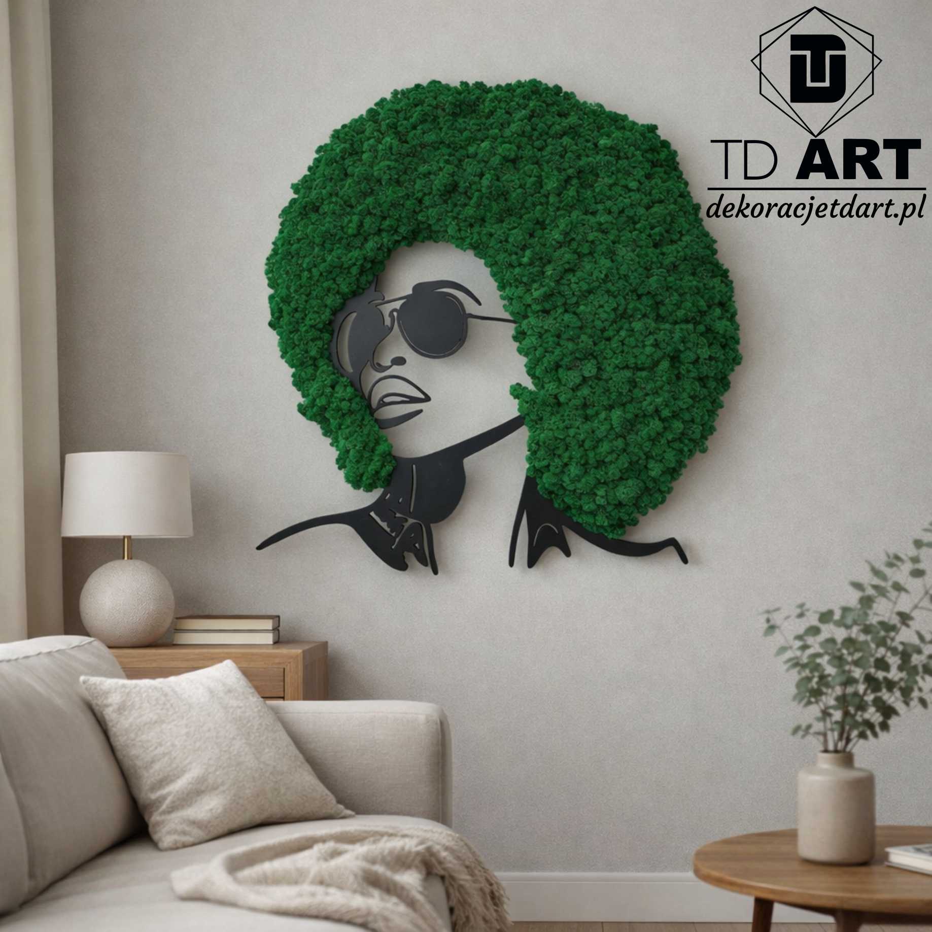 dekoracje ścienne o kobiety| kobieta | afro włosy | żywy obraz| mech chrobotek