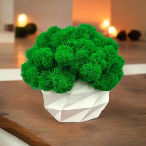 Kompozycja z roślinami stabilizowanymi i mchami to esencja nowoczesnego stylu i ekologicznej świadomości.