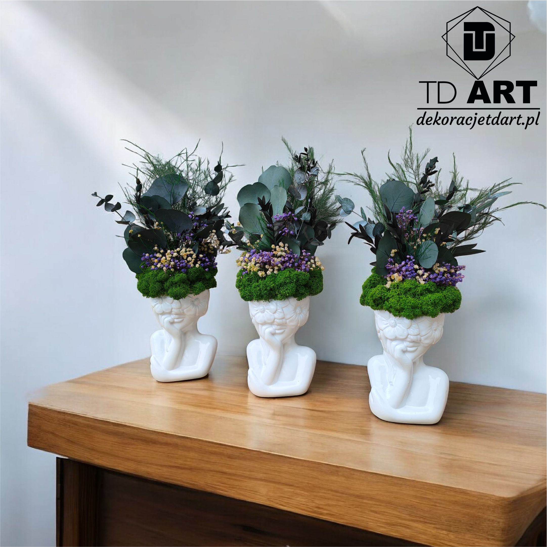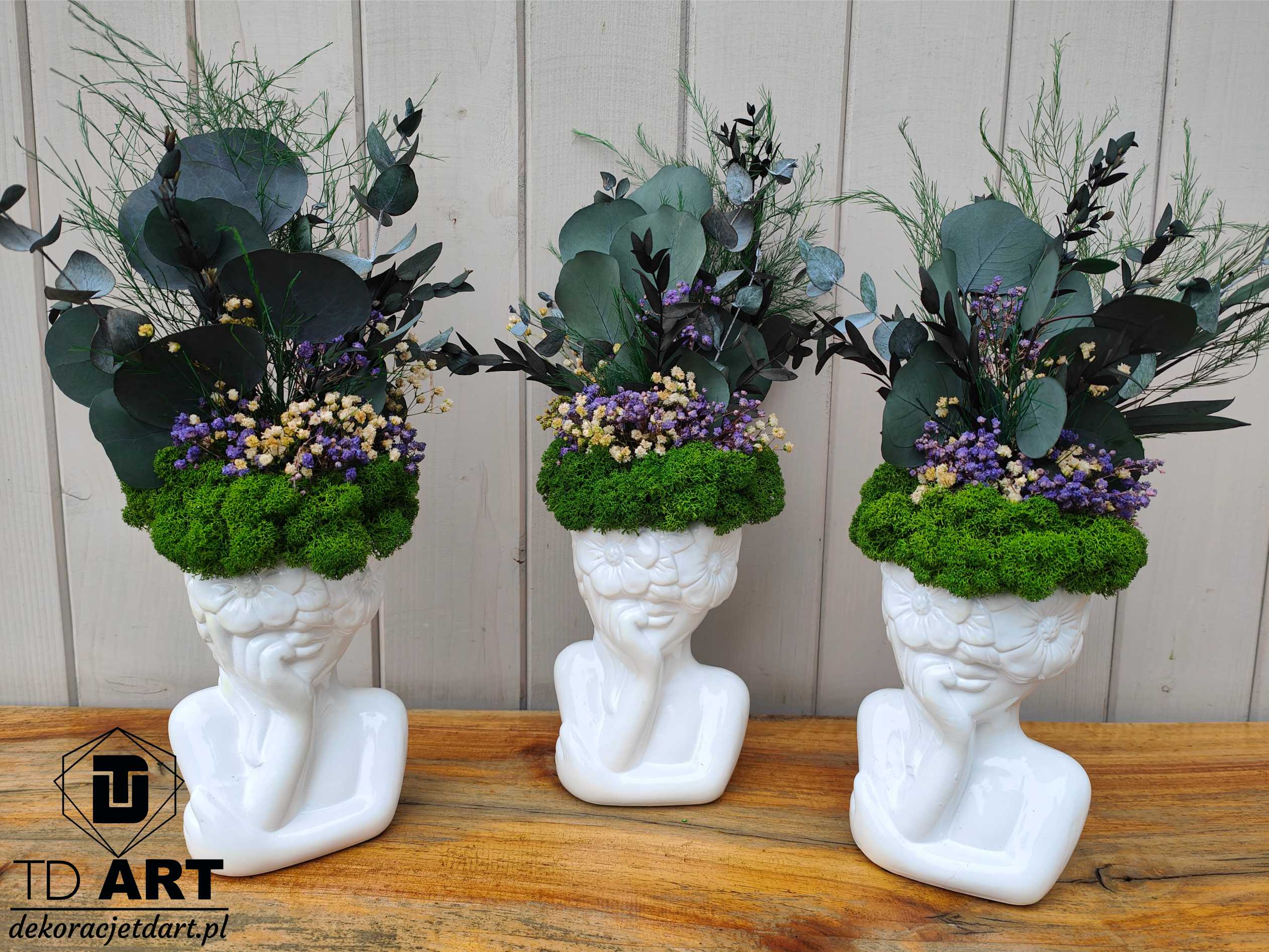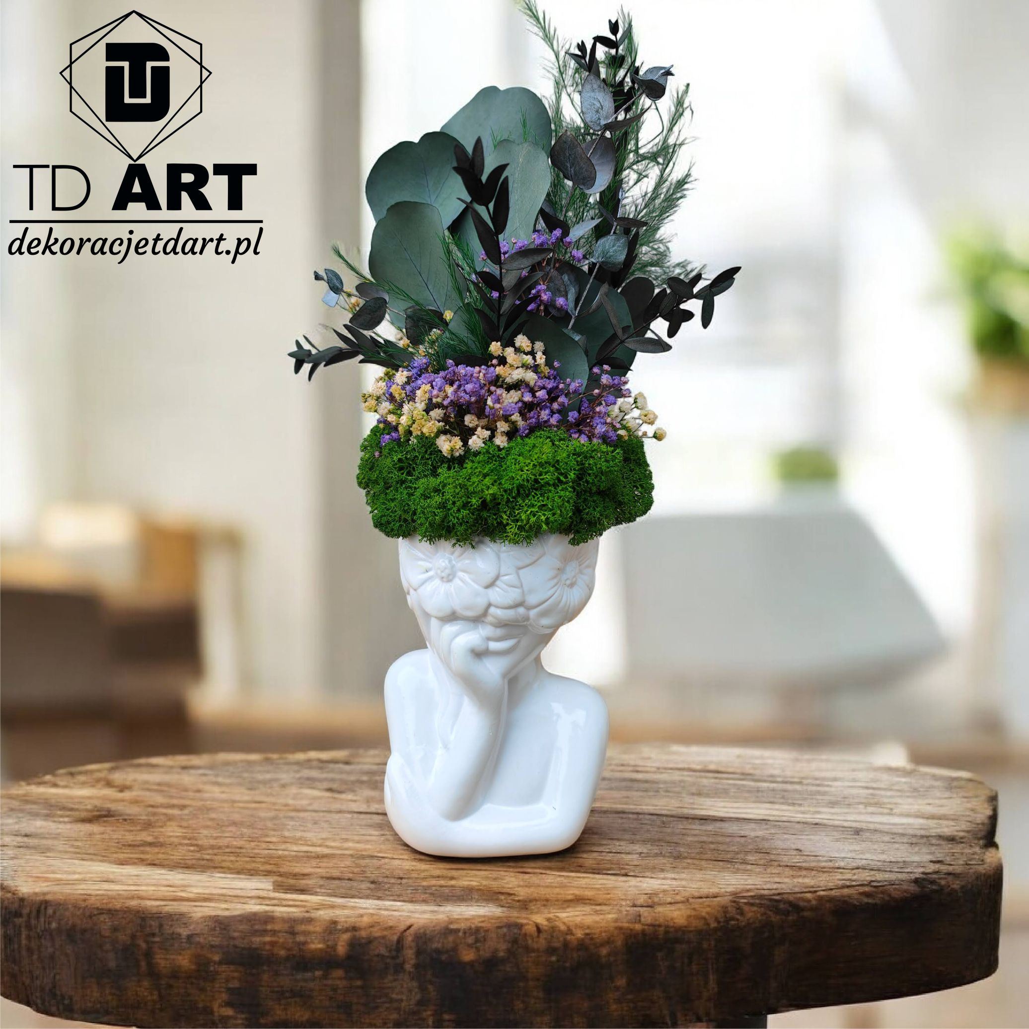 Upiększ wnętrze swojego domu poprzez niesamowitą dekorację – kompozycję z mchem i roślinami stabilizowanym – doniczka twarz