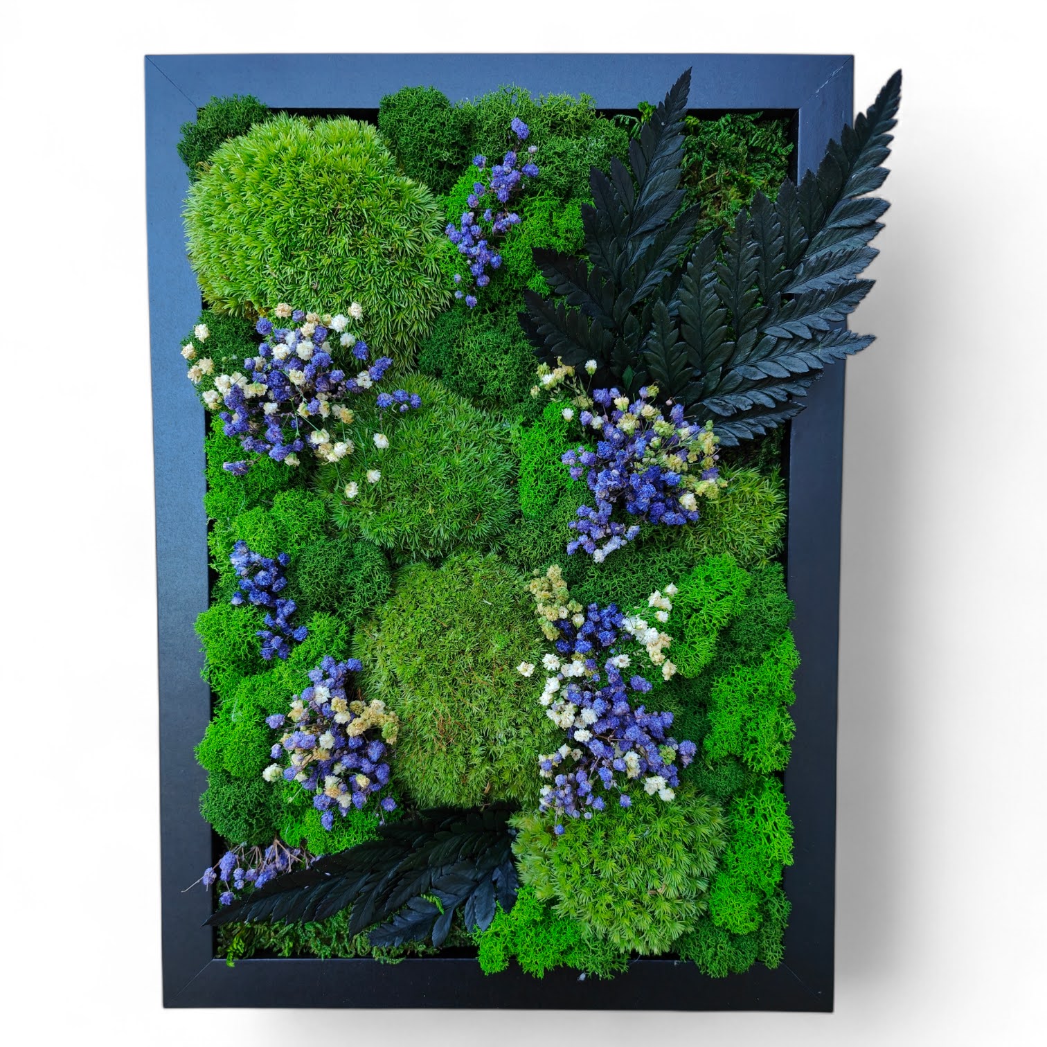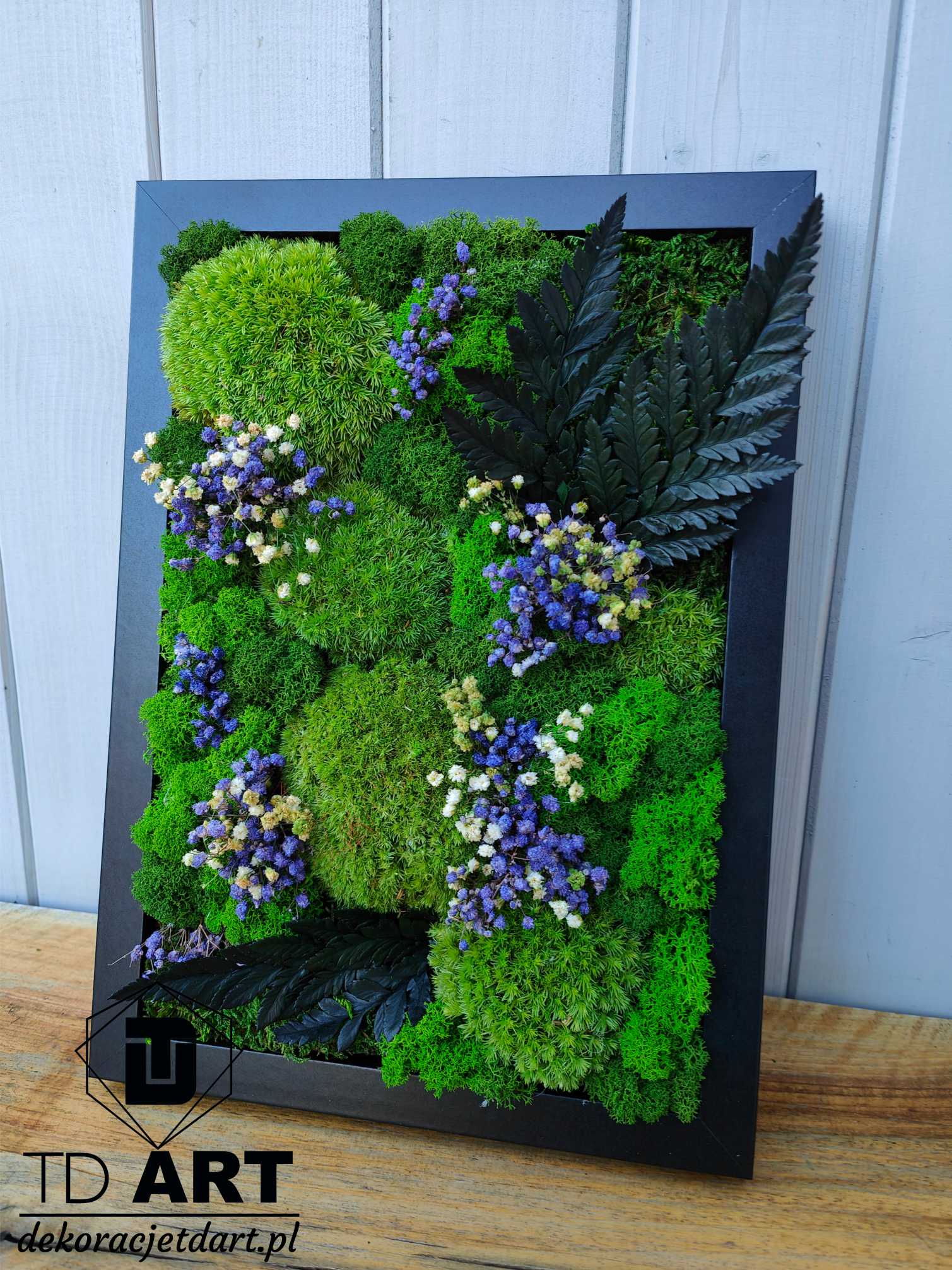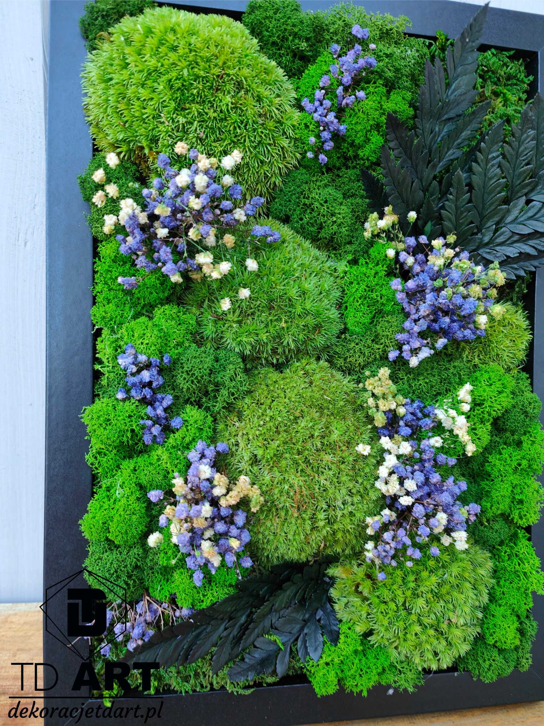 Dekoracja ścienna “Obraz z mchami i roślinami stabilizowanymi + gipsówka #”