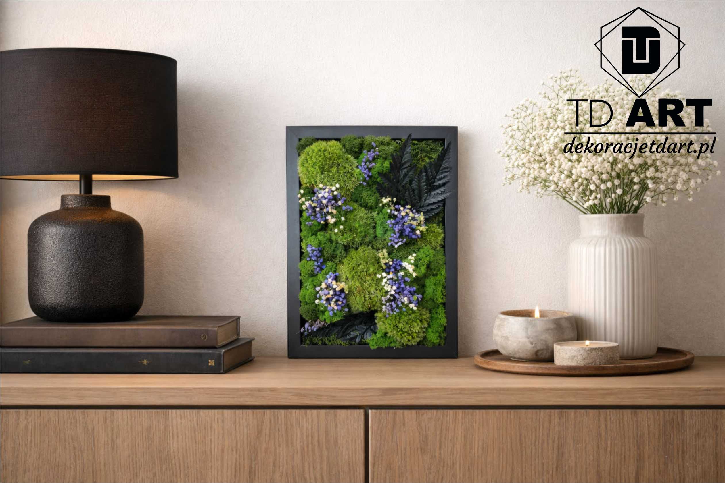 Upiększ wnętrze swojego domu poprzez niesamowitą dekoracje ścienną – Obraz z mchami i roślinami stabilizowanymi + gipsówka #