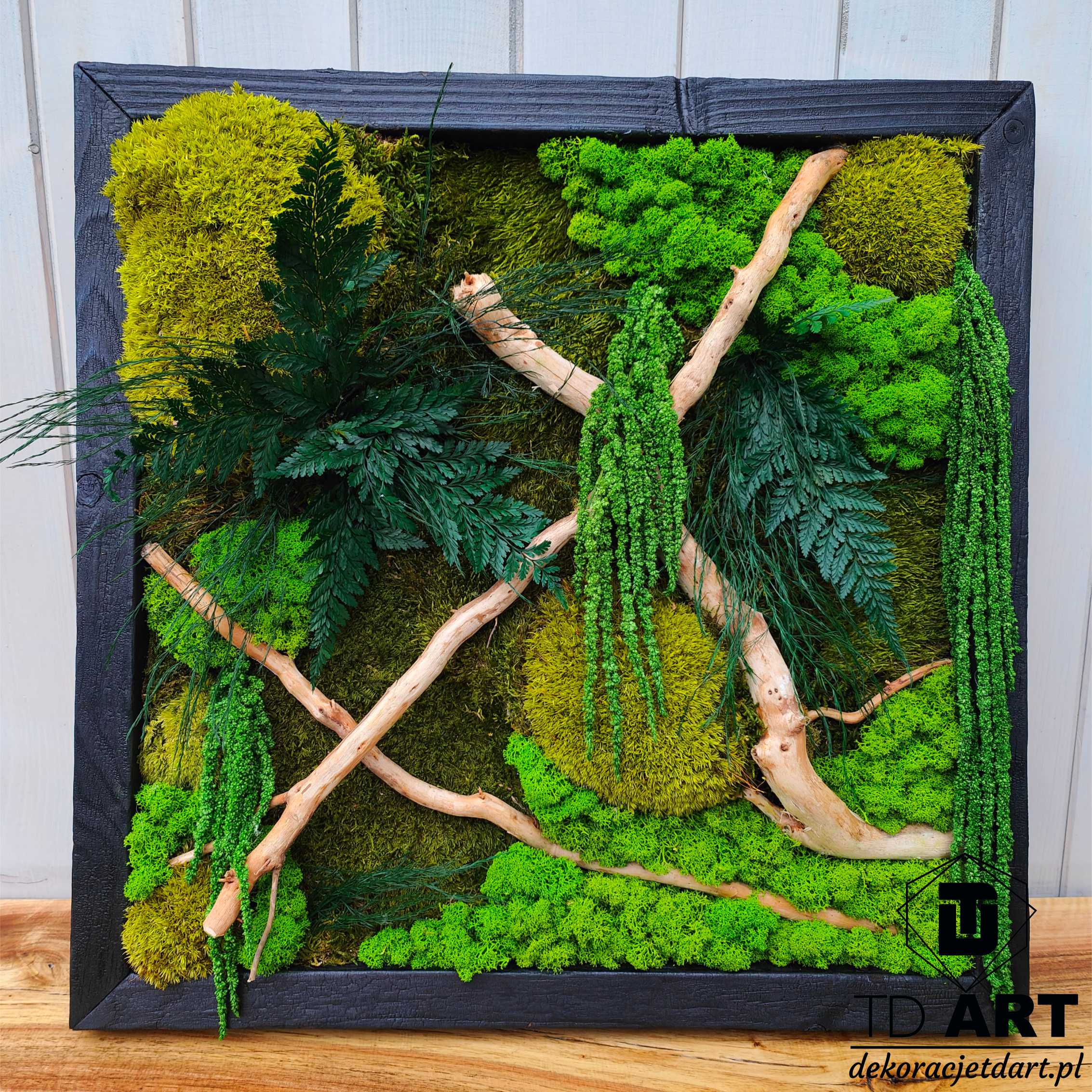Upiększ wnętrze swojego domu poprzez niesamowitą dekoracje ścienną – Naturalny obraz z mchami w palonej ramie – las w obrazie