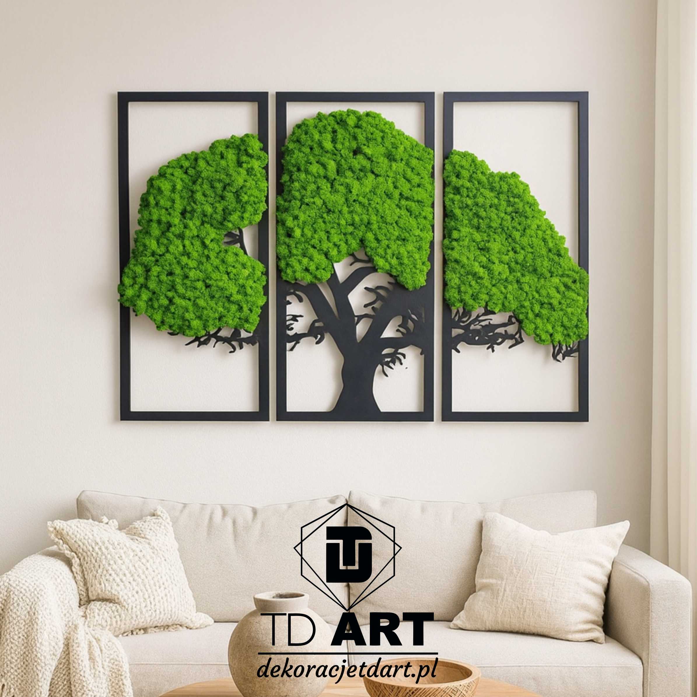 Upiększ wnętrze swojego domu poprzez niesamowitą dekoracje ścienną – Tryptyk DRZEWO z mchem chrobotkiem
