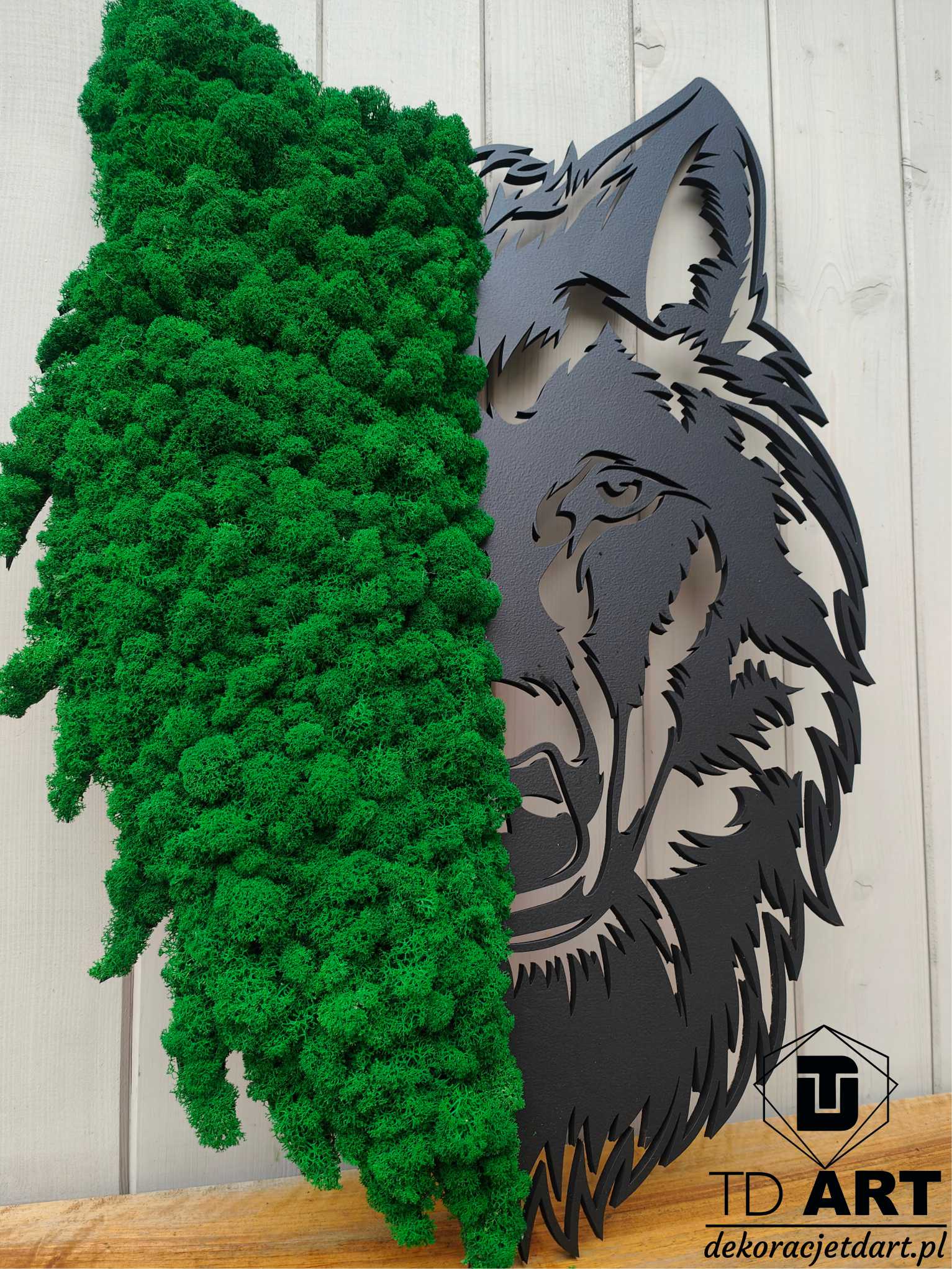 dekoracja ścienna | obraz z mchem | mech chrobotek | mech stabilizowany | żywy obraz | wilk z mchem | wilk na ścianę | dekoracja z mchem | obraz z mchem chrobotkiem | dekoracje ścienne z mchem