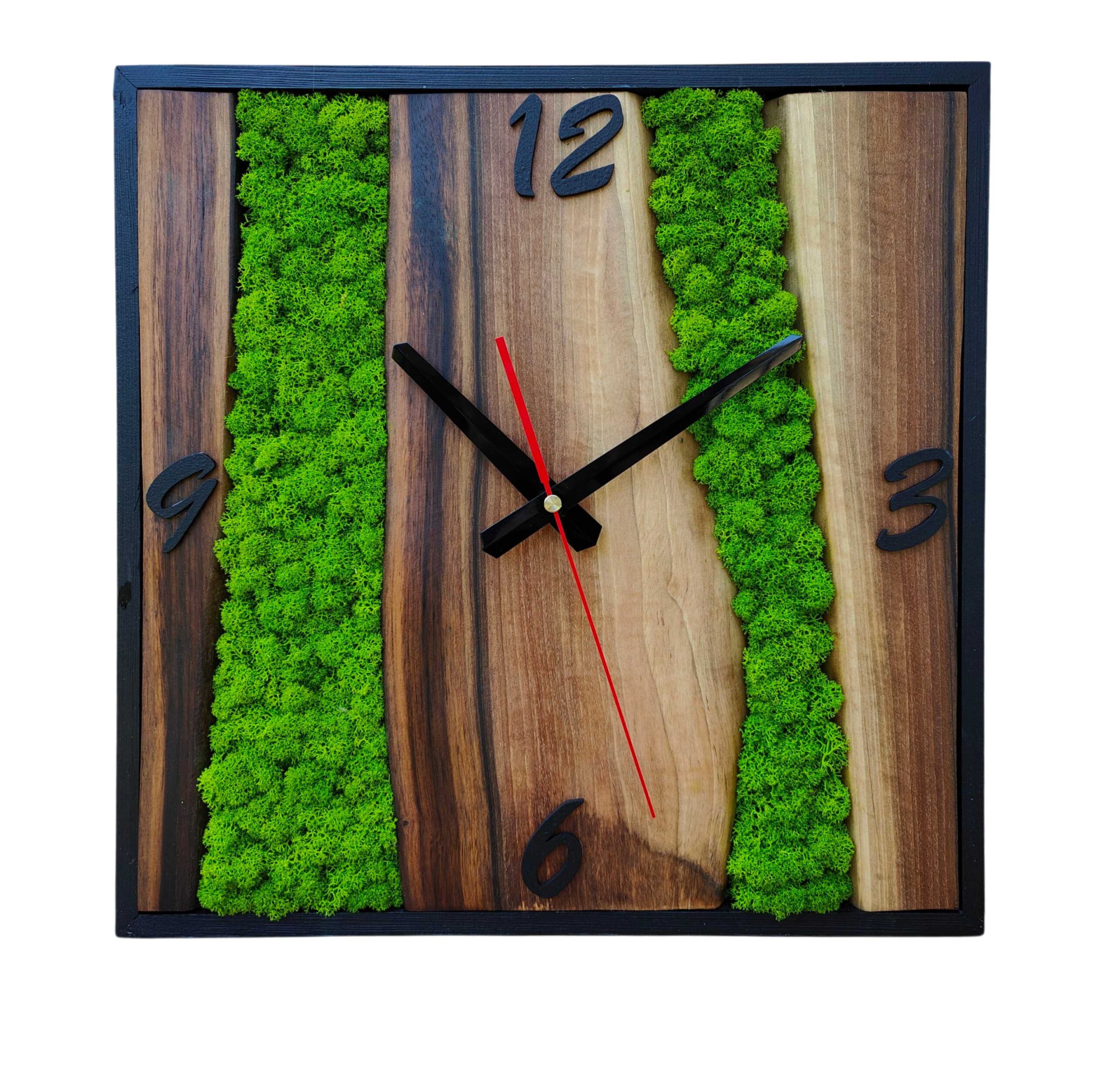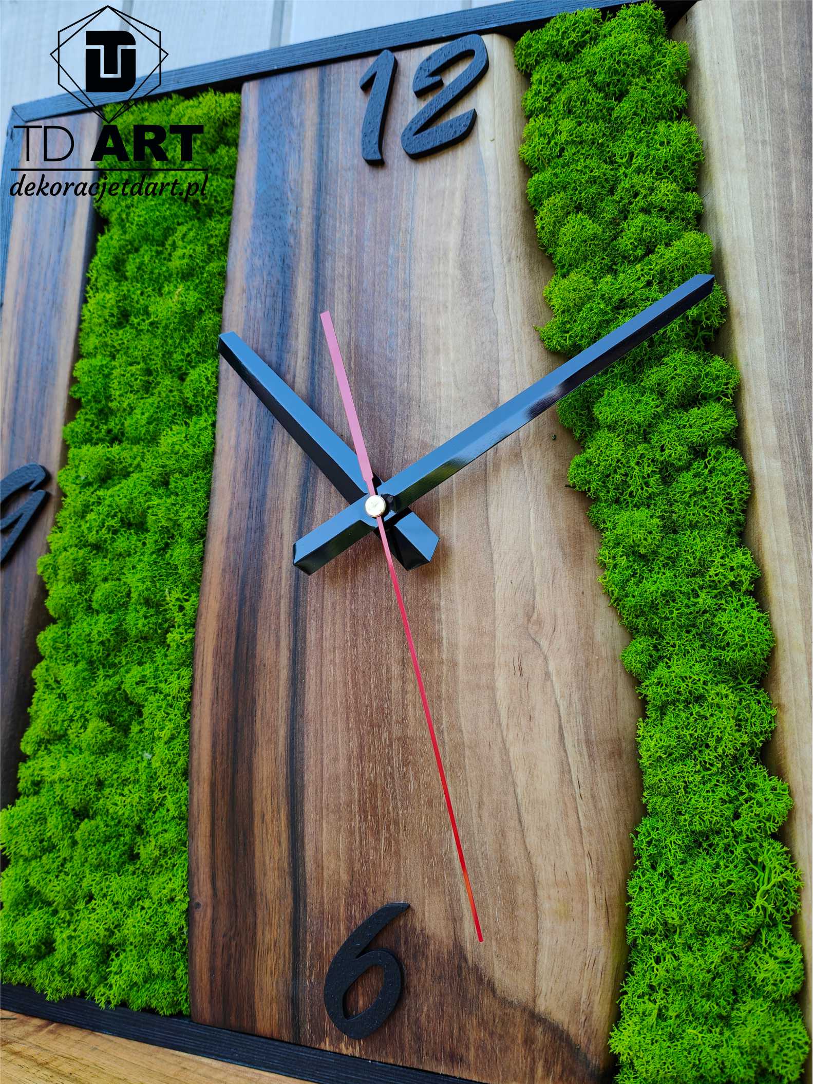 Upiększ wnętrze swojego domu poprzez niesamowity zegar drewniany z drewna orzechowego oraz mchem chrobotkiem