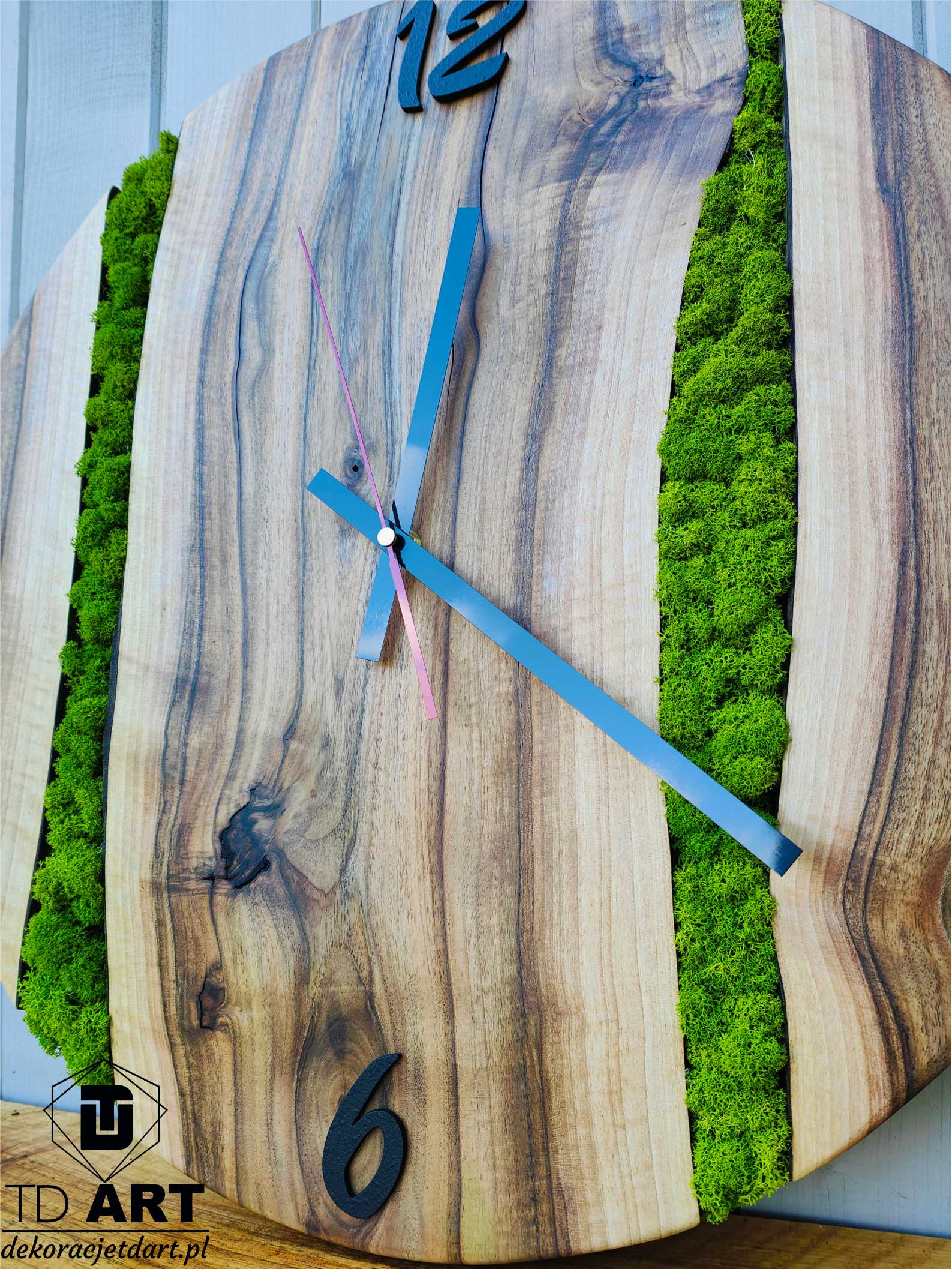 Upiększ wnętrze swojego domu poprzez niesamowity zegar drewniany z drewna orzechowego oraz mchem chrobotkiem