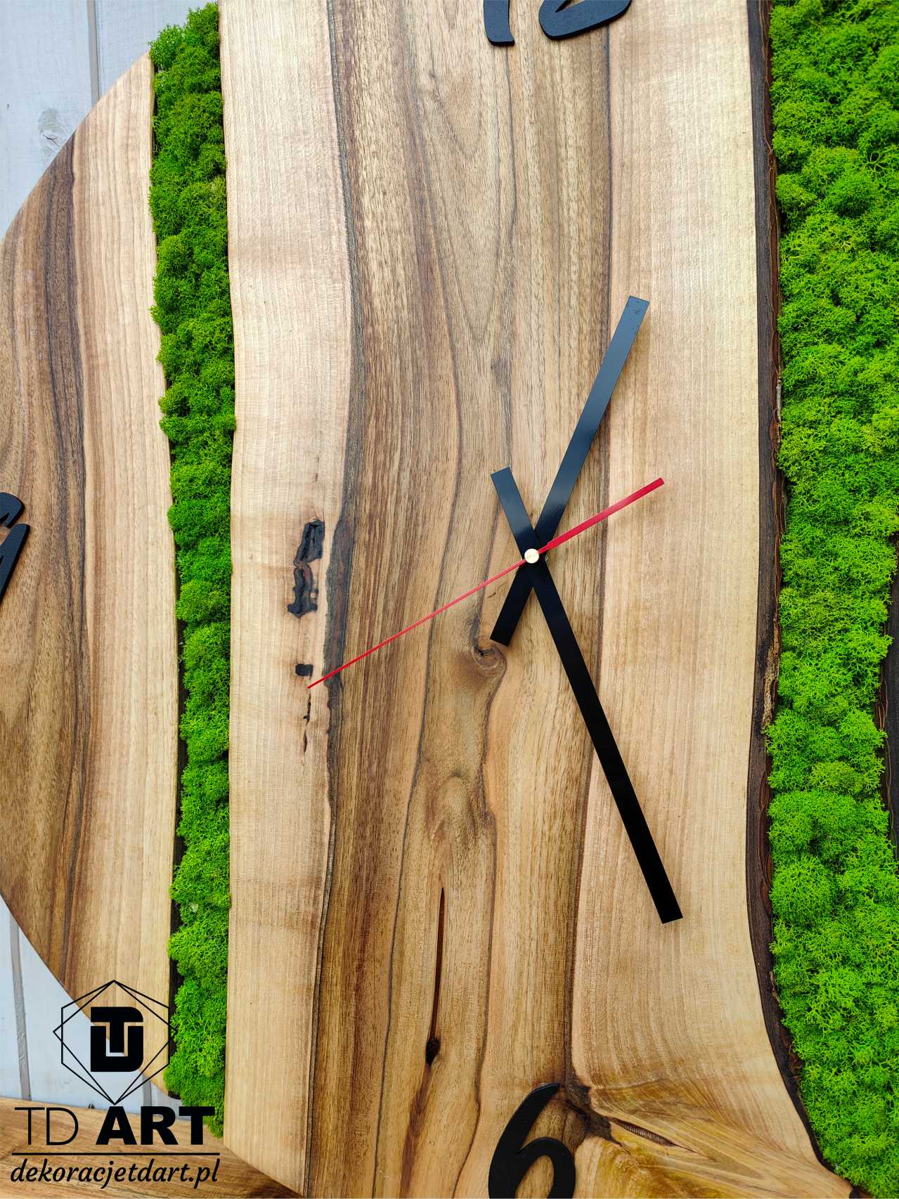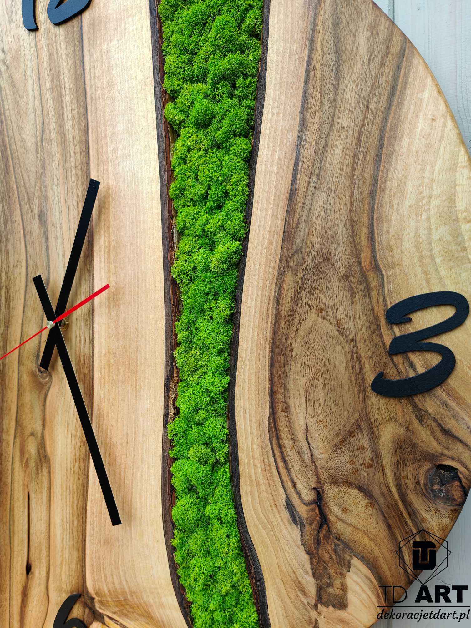 Upiększ wnętrze swojego domu poprzez niesamowity zegar drewniany z drewna orzechowego oraz mchem chrobotkiem